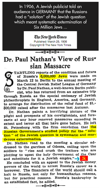 1906 New York Times: 6,000,000 Jews will be massacred in Russia