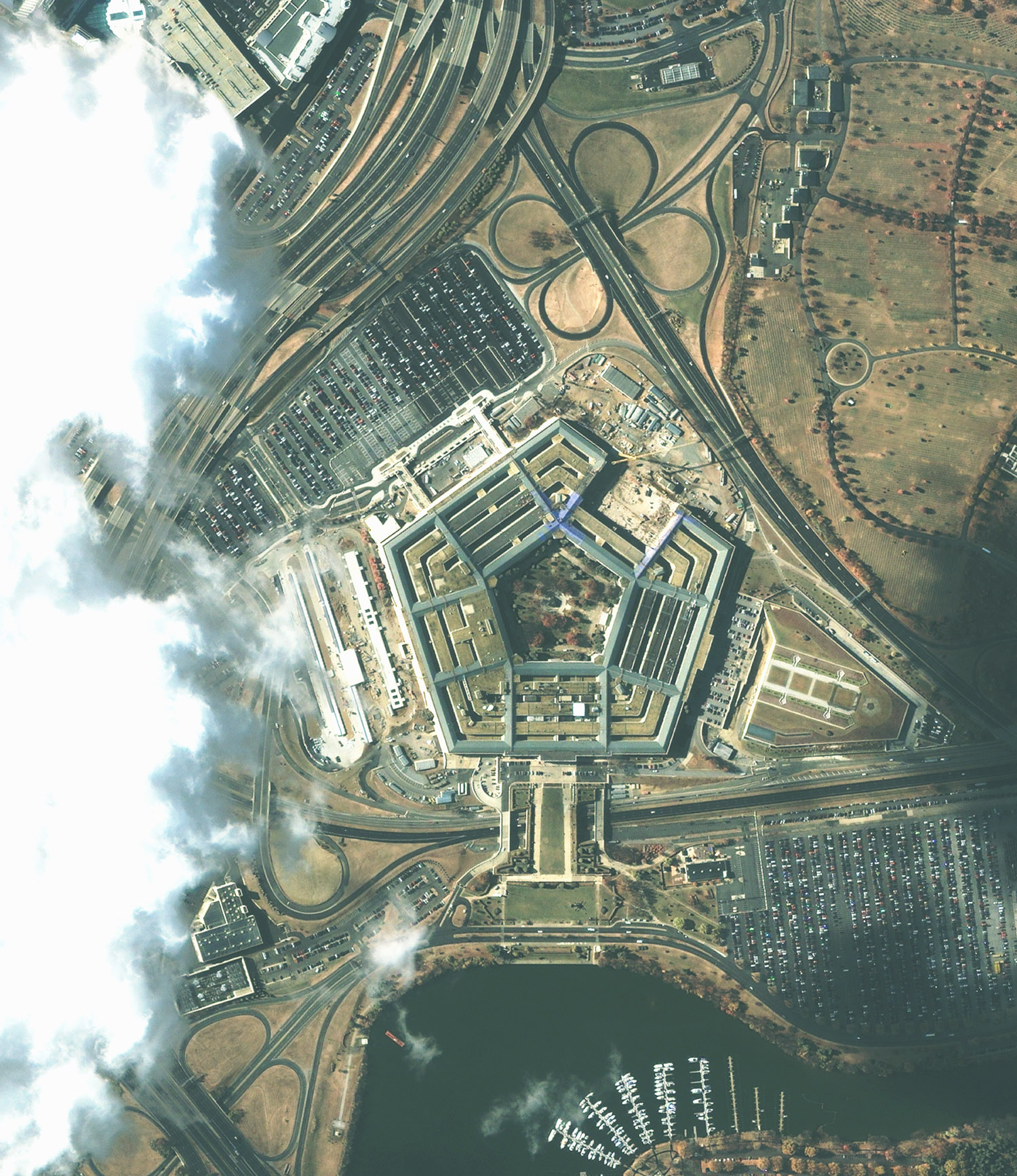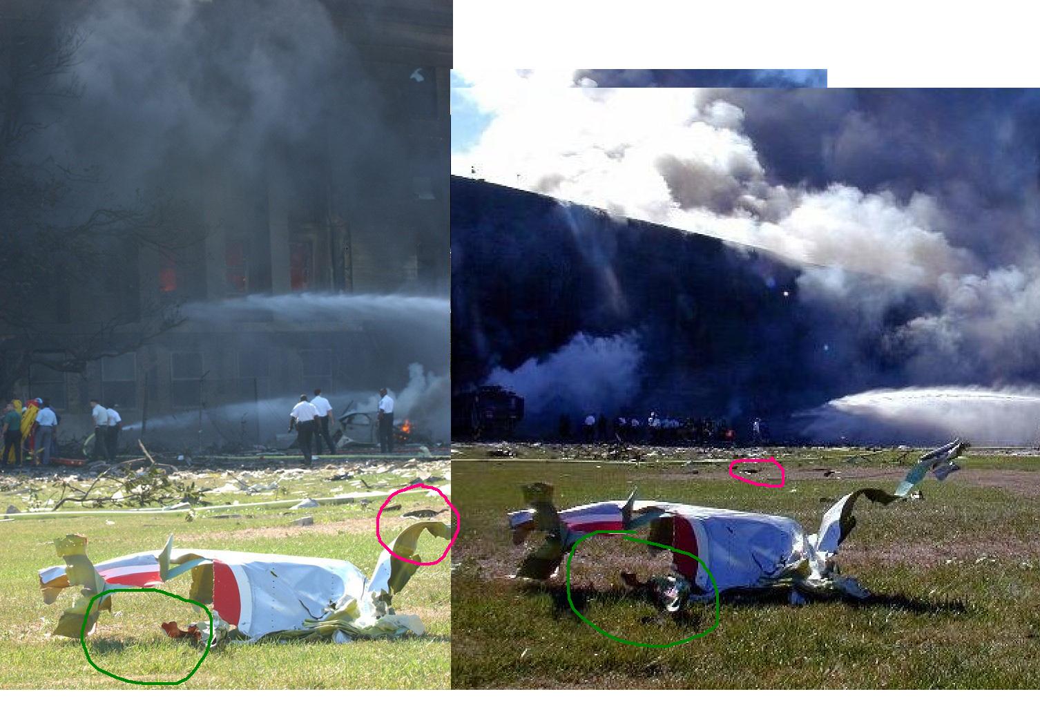 no impact zone from engines, wings, or tail section.