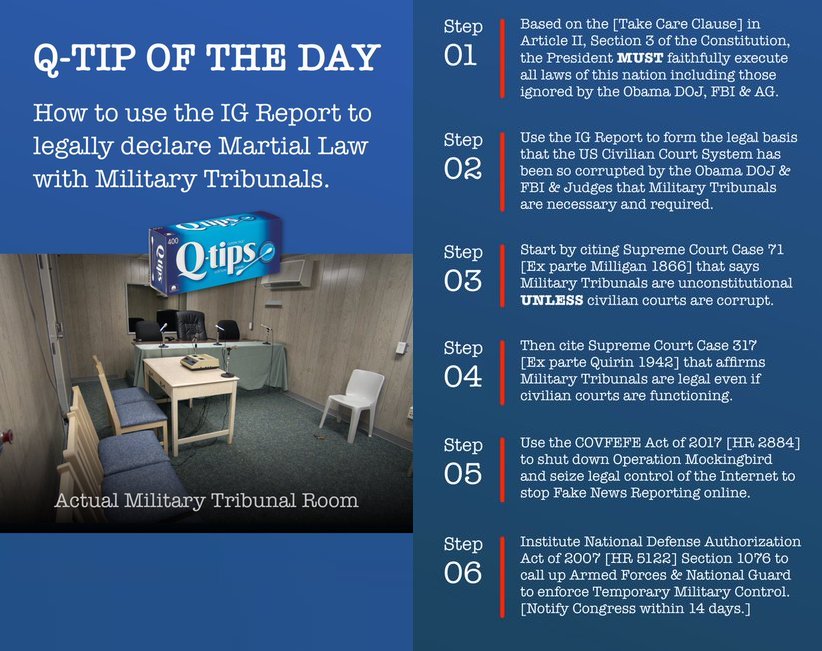 7) The exec orders re Martial Law, some say arrests began in January, are in GITMO etc... not so fast there sonny... as I read the exec orders, it suggests Judges may recommend Military Tribunals where deemed appropriate. https://trumpwhitehouse.archives.gov/pr ... ed-states/