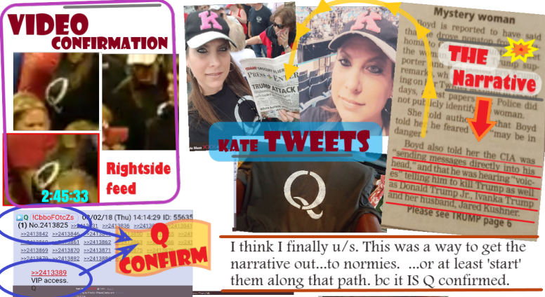 First, the mysterious woman’s twatter handle is Kate Mazz. And Jeffrey Gardner Boyd says he is hearing voices from the CIA: he’s an MK-ultra victim. Another one. Do you see it? Why is Kate Mazz’s initials KM, like MK? Is she a handler? Did she “drive” our poor Jeffrey all the way from Oklahoma to create her story, become an overnight heroine and use it to approach Trump? That would explain why she is so pushy with her tee-shirt her newspaper and her tweets… Ha-ha! When you get here, what do you do? Listen to Q: