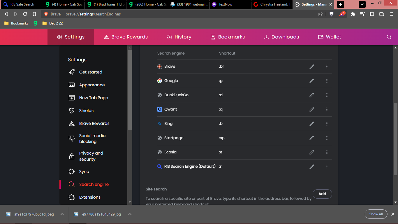 A while back in March there was discussion regarding a need for a new search engine since duckduckgo was gone commie.. and while this isn't it exactly it can be used to safe search, avoid tracking and is programmable from within settings page of https://search.reformit.solutions/ where one can select or unselect different sources for the returns RIS gives.