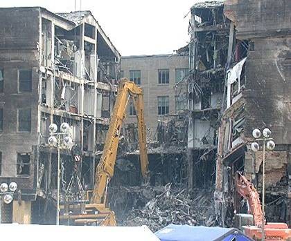 Note the kinked roof upper LH corner, the PentaCon is about to collapse.