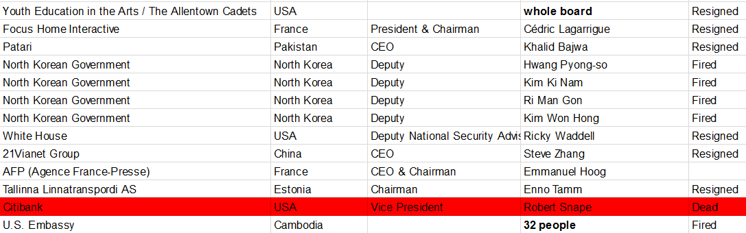 Note also the North Korean resignations - HURRAY! And the 32 from the Cambodian Embassy!